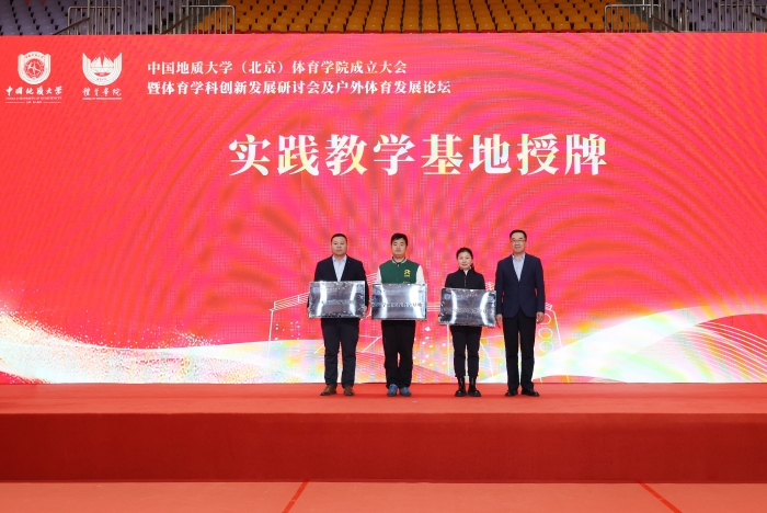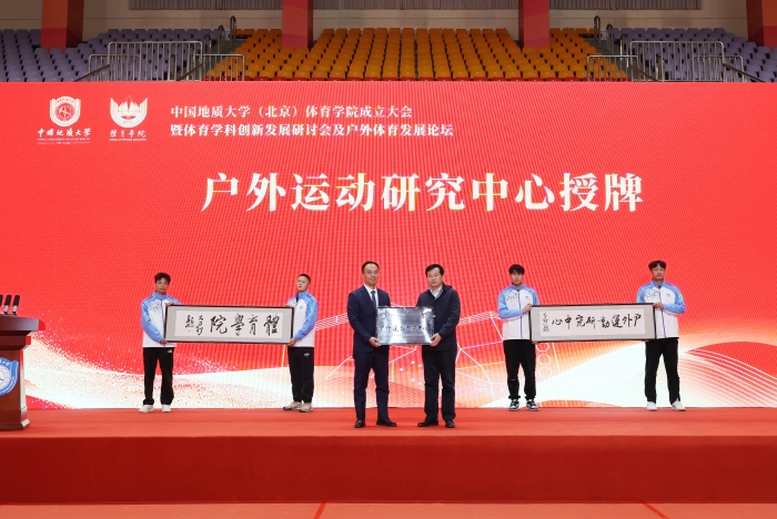 成立大会上,校党委副书记、纪委书记刘伟宣读了“关于成立体育学院、干部任命及户外运动研究中心”的相关文件。雷涯邻、赵志丹、杨贵仁、陈东升、姜恩来、王勇峰、杨桦、张瑞林共同为“中国地质大学(北京)体育学院”揭牌。副校长刘大锰为户外运动研究中心授牌。体育学院院徽、院训、院歌,以及户外运动研究中心标识正式对外发布。