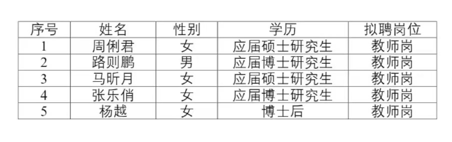 体育学院关于2026年招聘推荐学校面试人选公示