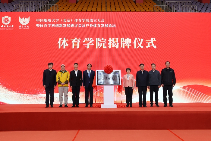 成立大会上,校党委副书记、纪委书记刘伟宣读了“关于成立体育学院、干部任命及户外运动研究中心”的相关文件。雷涯邻、赵志丹、杨贵仁、陈东升、姜恩来、王勇峰、杨桦、张瑞林共同为“中国地质大学(北京)体育学院”揭牌。副校长刘大锰为户外运动研究中心授牌。体育学院院徽、院训、院歌,以及户外运动研究中心标识正式对外发布。