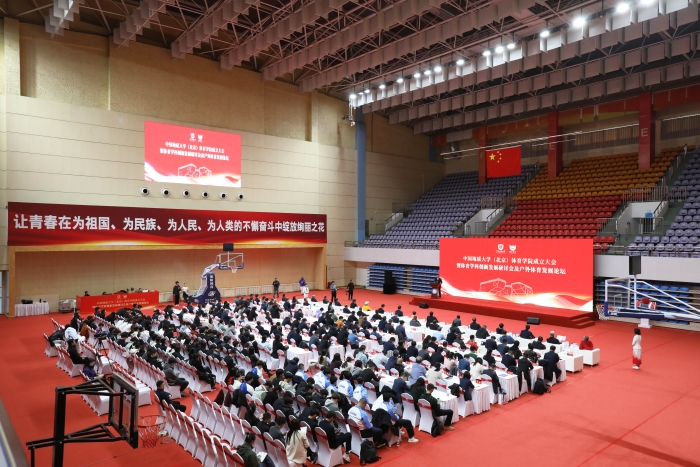 杨贵仁、陈东升、王勇峰,以及北京市大学生体育协会主席郝光安、清华大学体育部主任刘波先后发表致辞,对学院的成立表示热烈祝贺,并期望学院能立足新起点,展现新作为,为加快推进教育强国、体育强国建设贡献地大智慧与力量。
