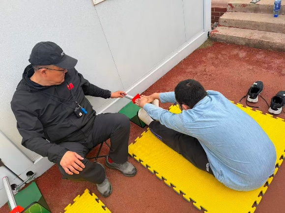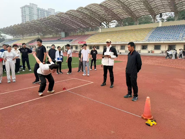 测试现场组织严密,秩序井然。体育学院全体教师提前到岗,引导学生充分热身,详细讲解测试规范和安全注意事项。监考教师团队规范操作、精准记录,实时采集各项测试数据,确保测试结果的客观、公正、准确。校医院医疗保障人员随时待命,全程关注学生状态,确保每一位学生都能在安全、有序的环境中完成测试。